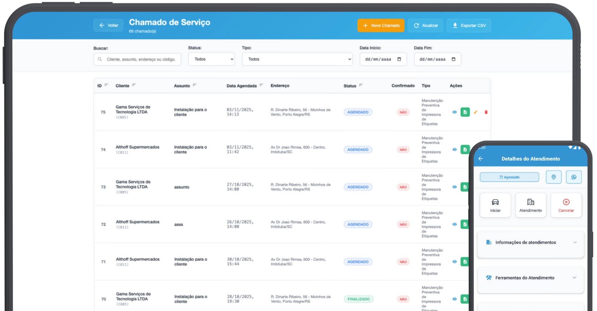 Controle total do seu atendimento técnico do agendamento à finalização